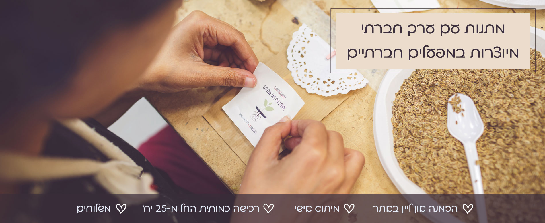 כשאתם בוחרים להעניק מתנה לעובדים, ללקוחות או לאורחים במהלך האירוע – הם מרגישים שתשומת הלב שלכם מושלמת. ואף יותר מכך: הם וודאי ישמחו לדעת שהמתנה המעוצבת יוצרת ערך חברתי אמיתי. ובכך תורמת לקהילה ולחברה.