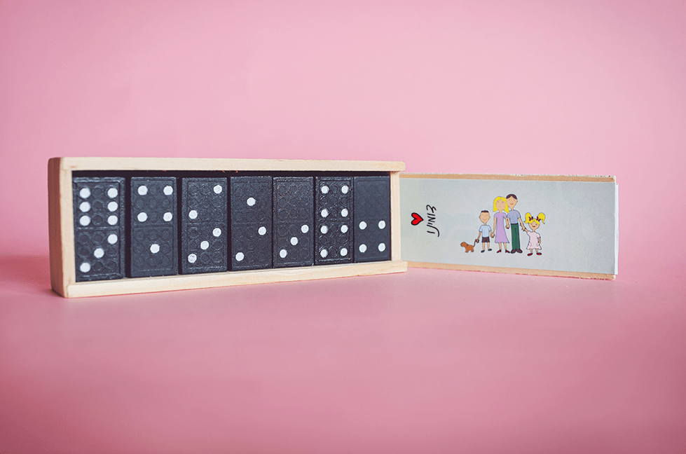 משחק דומינו לכל המשפחה בקופסה עץ במיתוג משפחתי במיוחד