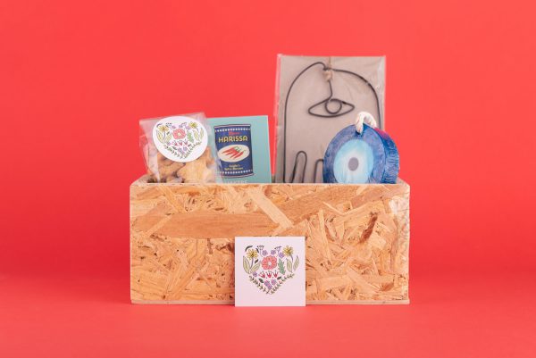 מארז חמסה יוקרתי שכולל סט מלחיות, חמסה בעבודת יד, עוגיות כוכבים וסבון חמסה.