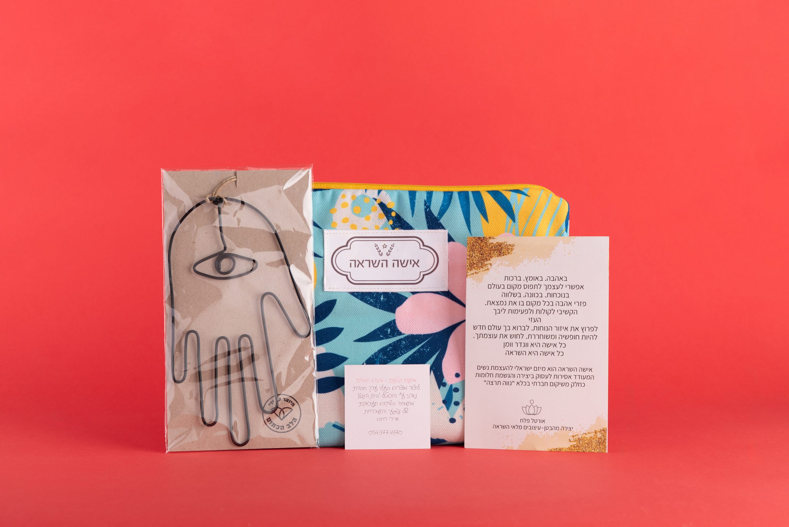 ארנק צבועני מיוצר במסגרת פרויקט העצמה לנשים בכלא 'נוה תרצה', עשוי שתי שכבות בד ובשילוב ניילון פנימי. ניתן להוסיף חמסה שמיוצרת בעבודת יד על ידי אנשים עם מוגבלויות.
