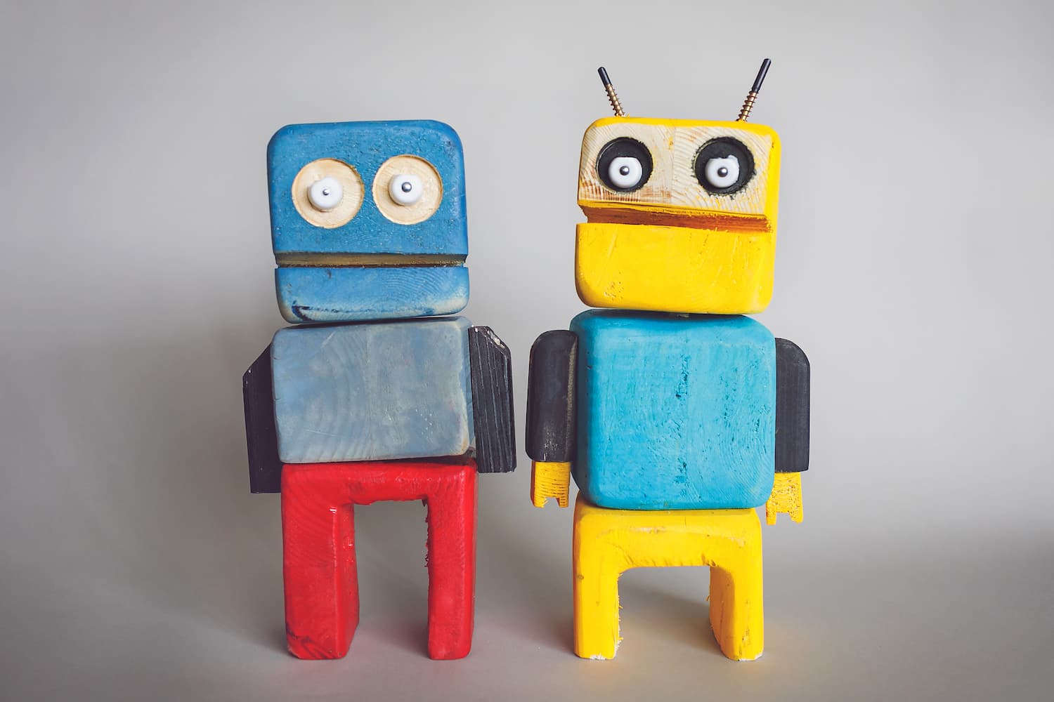 רובוטים צבעוניים מעץ מיוצרים בעבודת יד במגוון דמויות